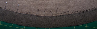 The hem is partially sewn using a blind catch stitch.